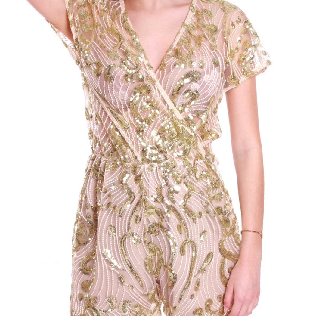 COCONUDA TUTINA DONNA Tessuto in tuttlle con fantasie in paillettes e ricami Scollatura anteriore ad incrocio Scollatura posteriore a V profonda elastico in vita Pantalocini coprenti interno TAGLIE E MISURAZIONI IN CENTIMETRI Taglia S = 40/42 Taglia M = 42/44 Taglia L = 44/46 Taglia XL = 46/48