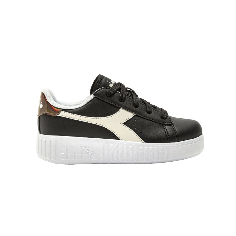 Scarpa sportiva bambino con dettagli traforati, fregio diadora e back in fantasia reflective e suola colorata abbinata.
