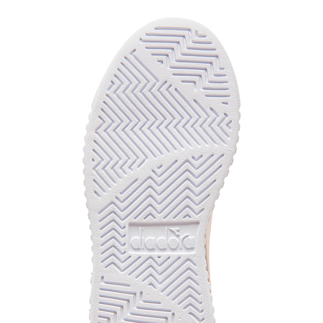 Scarpa sportiva bambino con dettagli traforati, fregio diadora e back in fantasia reflective e suola colorata abbinata.