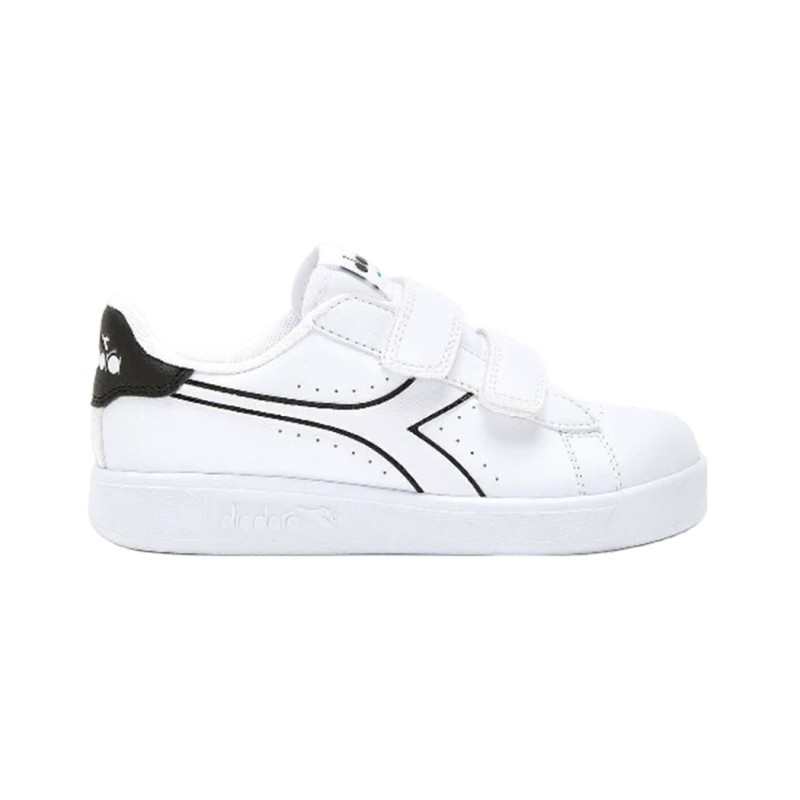 Sneaker per bimbi low cut, dettagli traforati, pratica chiusura a strappo, fregio, linguetta e back abbinati.