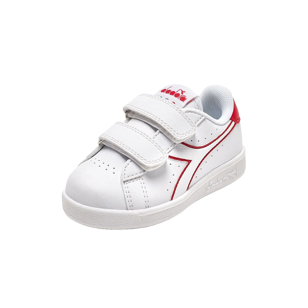 Sneaker per bimbi low cut, dettagli traforati, pratica chiusura a strappo, fregio, linguetta e back abbinati.