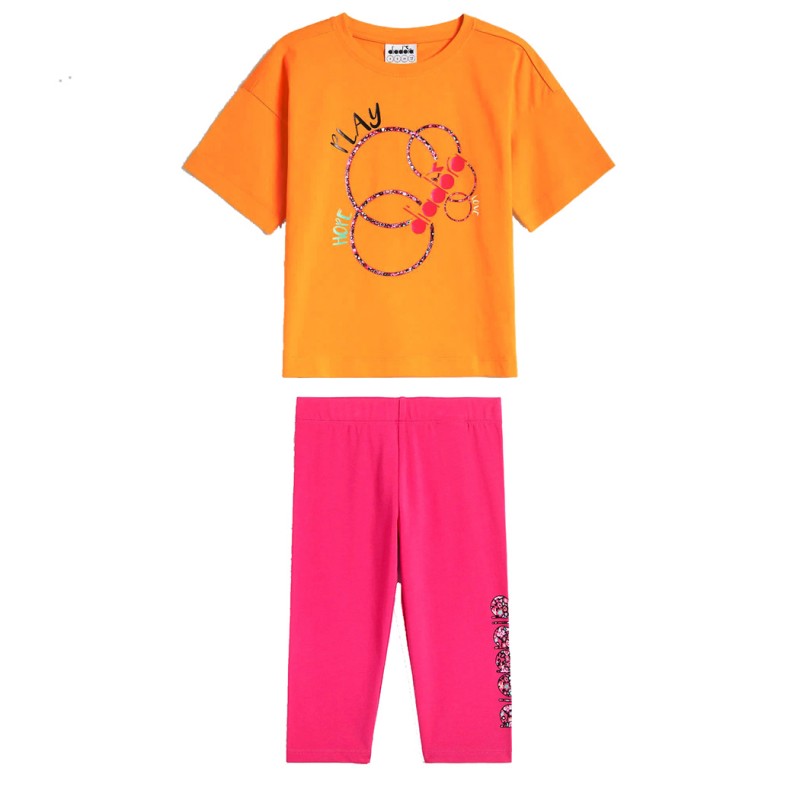 Un outfit allegro e colorato per la bella stagione? Eccolo! Set t-shirt e pantaloncini elasticizzati sport per ragazze in 2 varianti colore, tutte da provare!