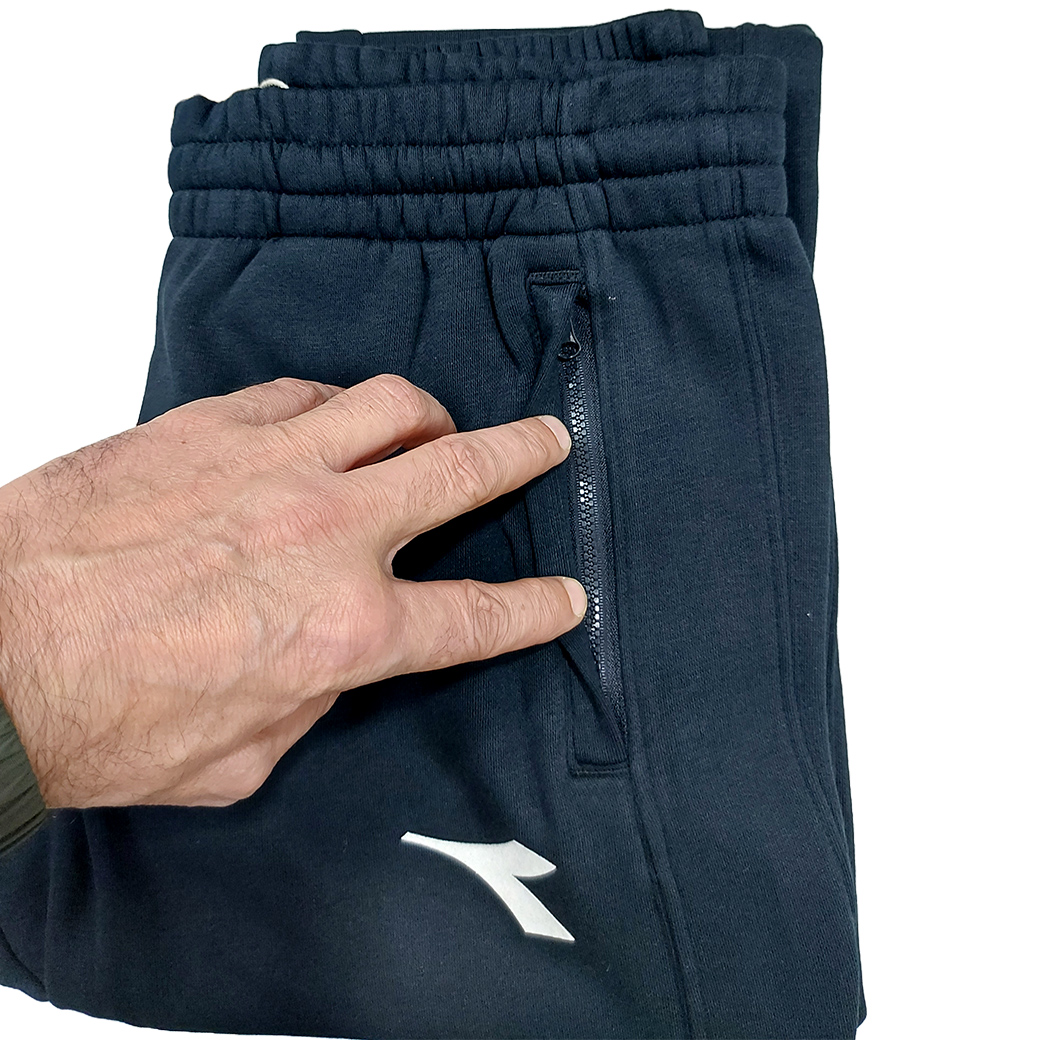 Pantaloni sportivi realizzati in felpa cotone french terry. Regular fit, tinta unita, vita elastica con coulisse regolabile, elastico alle caviglie e logo Diadora stampato. Tasche anteriori con chiusura lampo (Zip). Tasca posteriore aperta. Adatti per autunno,primavera e inverno, comodi e caldi
