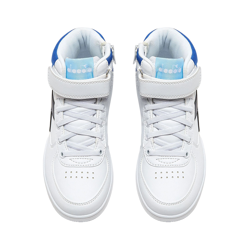 Sneaker per ragazzi in pelle sintetica con chiusura zip e strappo. Si arricchisce del fregio a contrasto ed il collarino in tessuto.