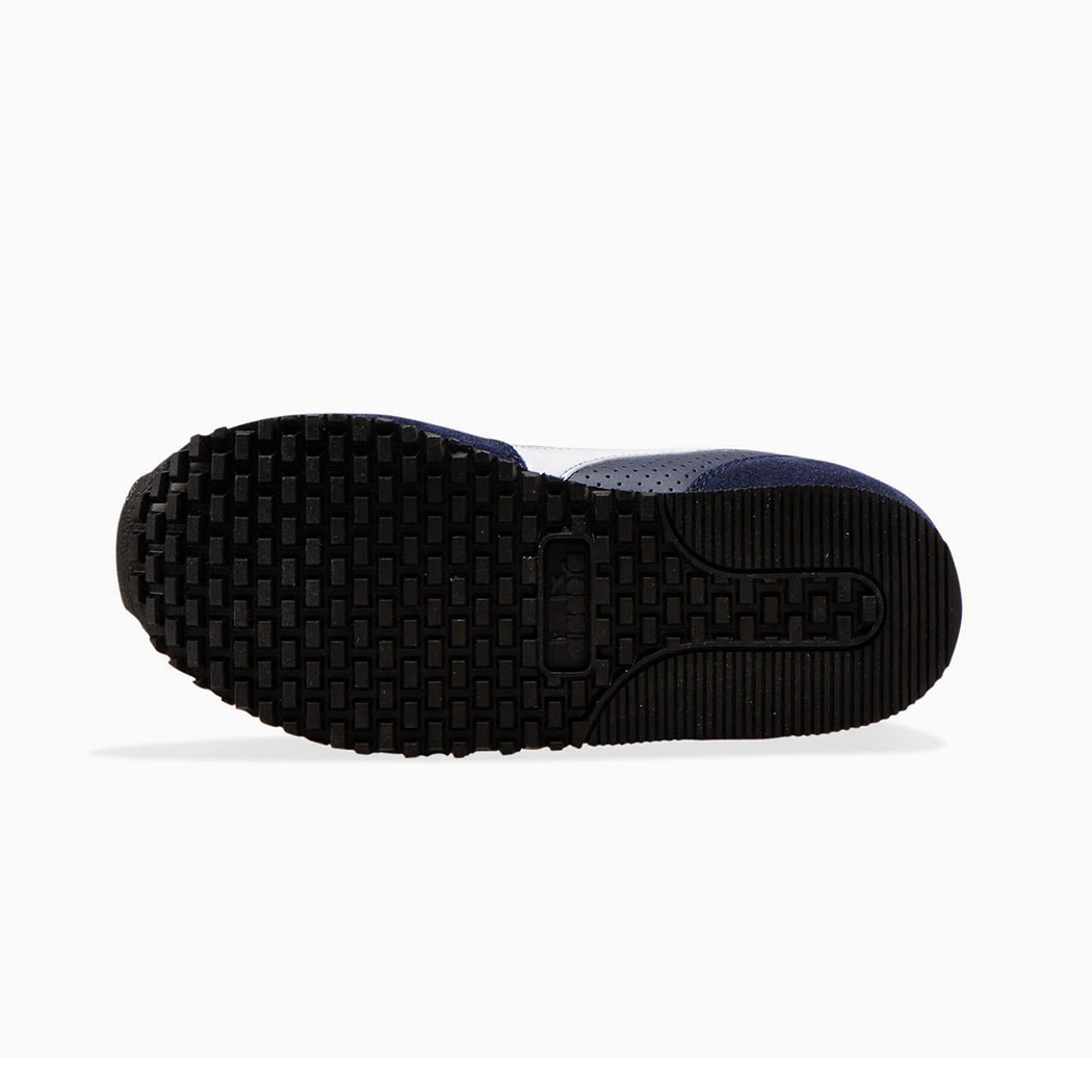 Scarpa sportiva bambino low cut con dettagli effetto metallico. Giochi di colore tra fregio, loghi e back. Comoda chiusura a strappo.
