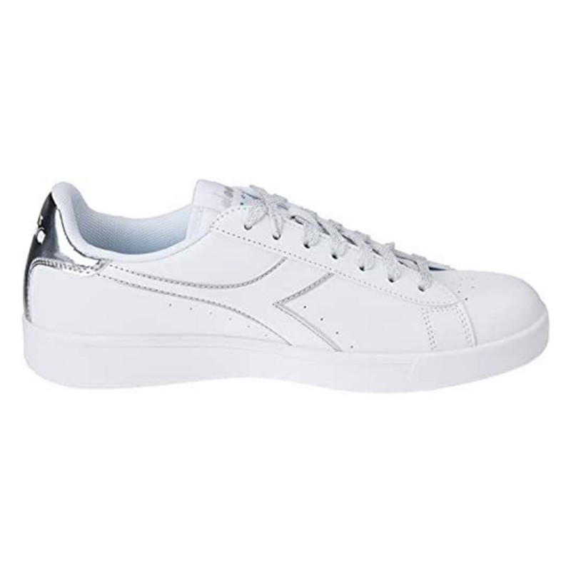 Sneaker donna low cut con fregio Diadora impreziosito da dettagli lucidi abbinati a linguetta e back. Lacci effetto glitter. Leggere e comode. Tomaia in ecopelle.