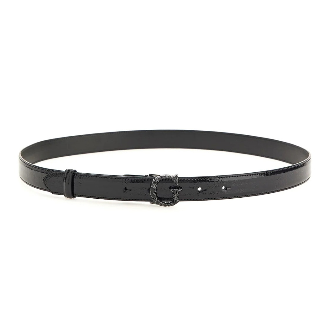 GUESS Cintura in vernice. Cintura in vernice nera; modello sottile con fibbia logo Guess con pietre tono su tono.