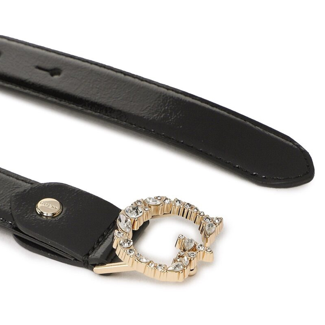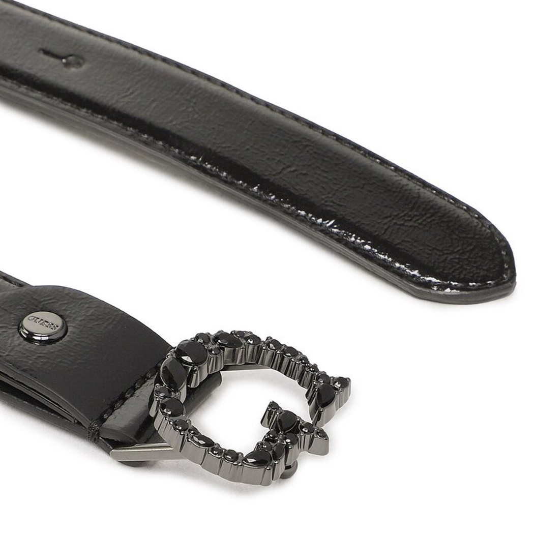 GUESS Cintura in vernice. Cintura in vernice nera; modello sottile con fibbia logo Guess con pietre tono su tono.