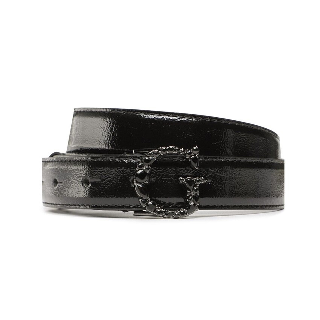 GUESS Cintura in vernice. Cintura in vernice nera; modello sottile con fibbia logo Guess con pietre tono su tono.
