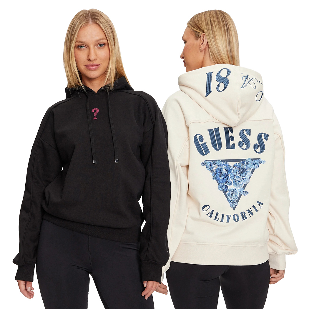 Guess felpa cappuccio con applicazioni STRASS posteriori. Il modello realizzato in un tessuto di cotone estremamente confortevole.