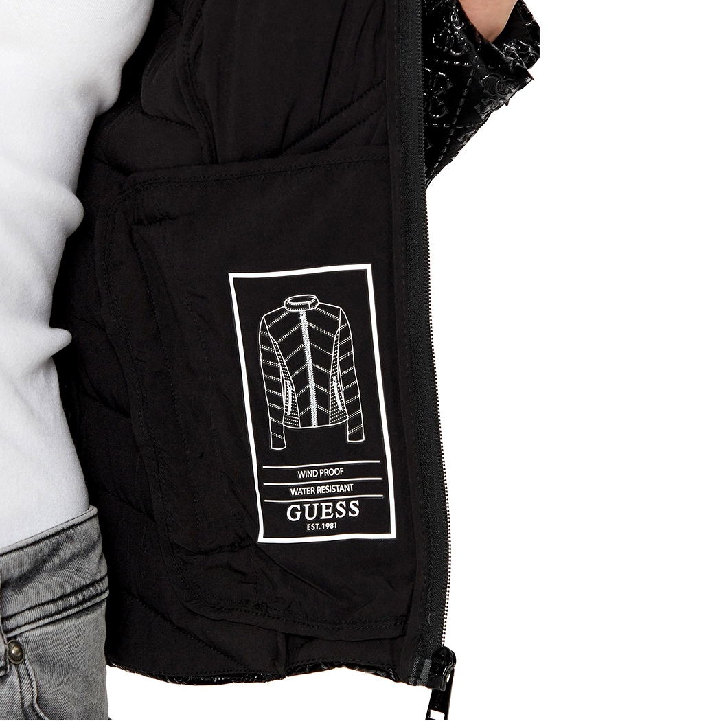 Giacca logo all'over 4g della collezione Guess. Un modello di transizione fatto di una combinazione di materiali diversi. Il materiale con flessibilità leggera garantisce piena libertà di movimento.