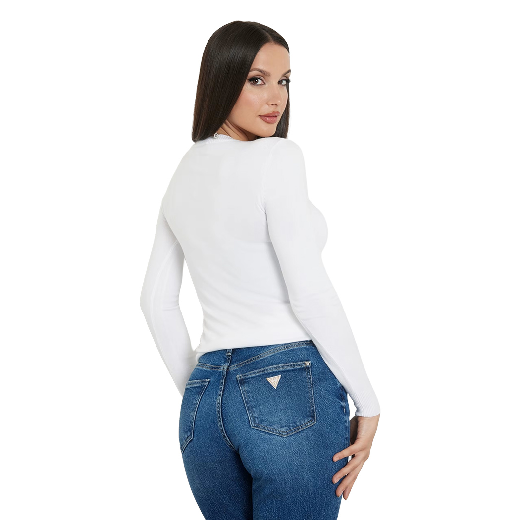 GUESS MAGLIA DONNA LOGO FRONTALE CON STRASS VISCOSA INVERNALE W4YR31Z2NQ2