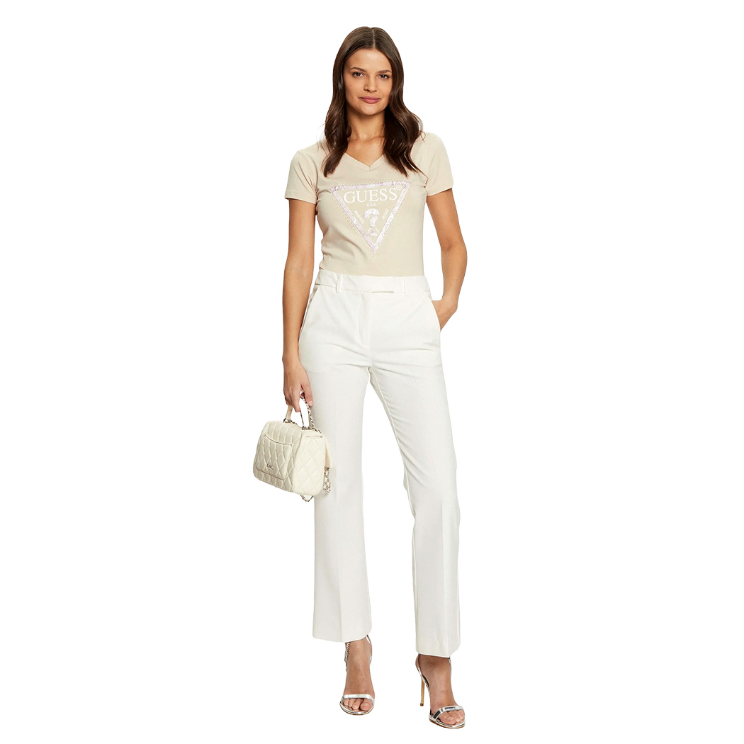 GUESS T-SHIRT MAGLIA SCOLLO A V DONNA LOGO FRONTALE TRIANGOLO STRASS W5RI21J1314