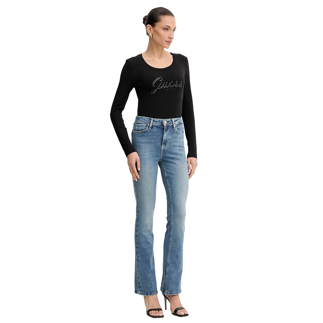 GUESS T-SHIRT MAGLIETTA DONNA MANICA LUNGA LOGO FRONTALE STRASS W5YI26J1314