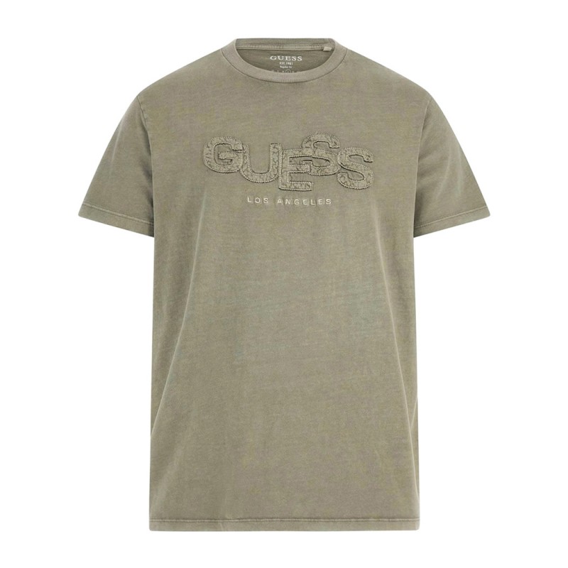 T-shirt uomo Guess in cotone. Modello con logo cucito e scritta ricamata "LOS ANGELES", tinta unita e vestibilità regolare.