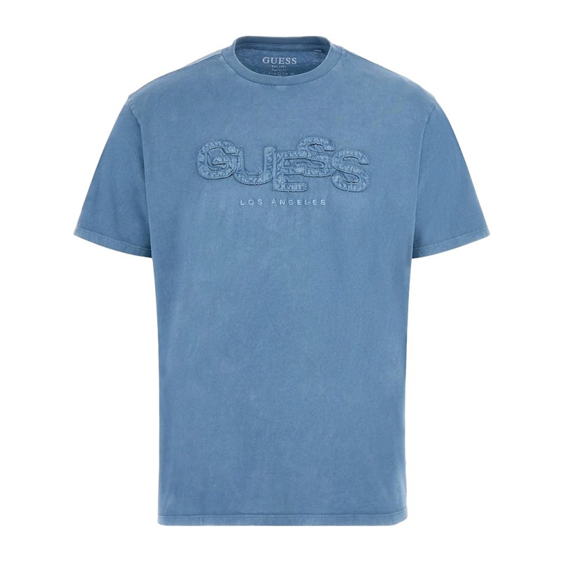 T-shirt uomo Guess in cotone. Modello con logo cucito e scritta ricamata "LOS ANGELES", tinta unita e vestibilità regolare.