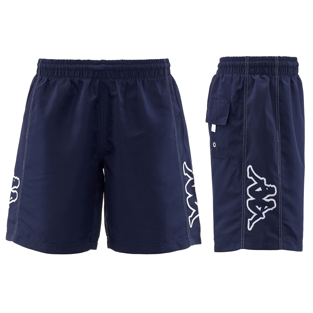 SPORT. Short mare da uomo, in tessuto microfibra mano pesca. REGULAR FIT. Elastico in vita e coulisse regolabile, inserti laterali. Tasca posteriore con patta e occhiello in metallo, slip interno in rete. Logo Omini outline stampati a contrasto su entrambi i lati.