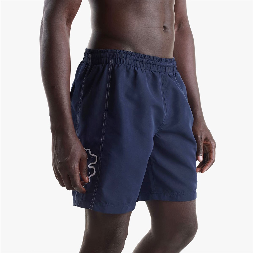 SPORT. Short mare da uomo, in tessuto microfibra mano pesca. REGULAR FIT. Elastico in vita e coulisse regolabile, inserti laterali. Tasca posteriore con patta e occhiello in metallo, slip interno in rete. Logo Omini outline stampati a contrasto su entrambi i lati.