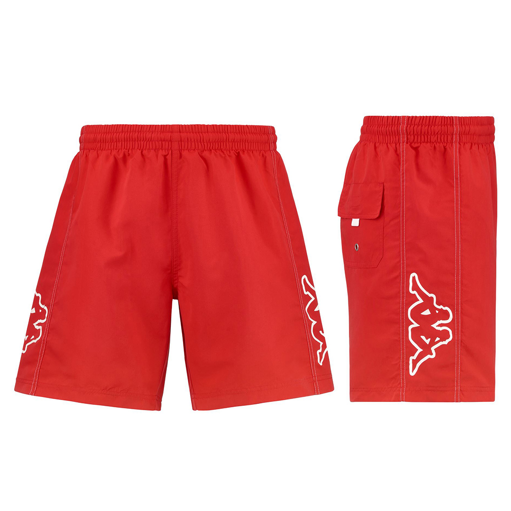 SPORT. Short mare da uomo, in tessuto microfibra mano pesca. REGULAR FIT. Elastico in vita e coulisse regolabile, inserti laterali. Tasca posteriore con patta e occhiello in metallo, slip interno in rete. Logo Omini outline stampati a contrasto su entrambi i lati.