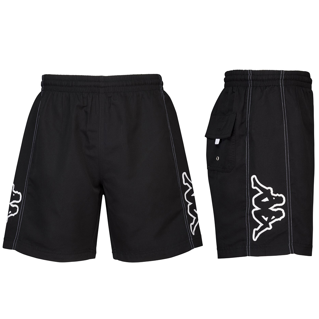 SPORT. Short mare da uomo, in tessuto microfibra mano pesca. REGULAR FIT. Elastico in vita e coulisse regolabile, inserti laterali. Tasca posteriore con patta e occhiello in metallo, slip interno in rete. Logo Omini outline stampati a contrasto su entrambi i lati.
