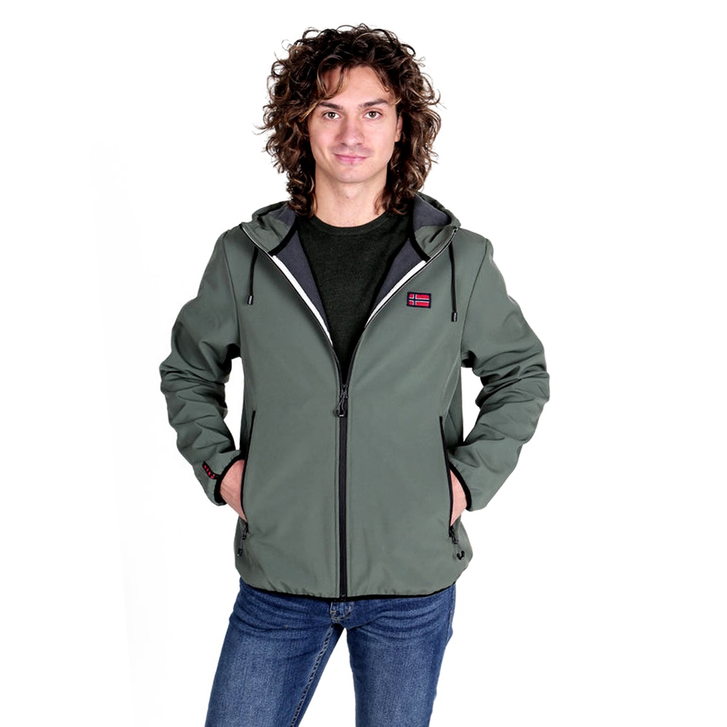 Giubbotto full zip in tessuto softshell con interno in micropile. Cappuccio regolabile con coulisse. Tasche laterali con cerniera.Elastico sui polsi e sul fondo. Piccoli loghi frontali. Leggero, caldo e comodo.