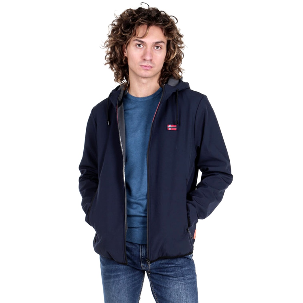 Giubbotto full zip in tessuto softshell con interno in micropile. Cappuccio regolabile con coulisse. Tasche laterali con cerniera.Elastico sui polsi e sul fondo. Piccoli loghi frontali. Leggero, caldo e comodo.