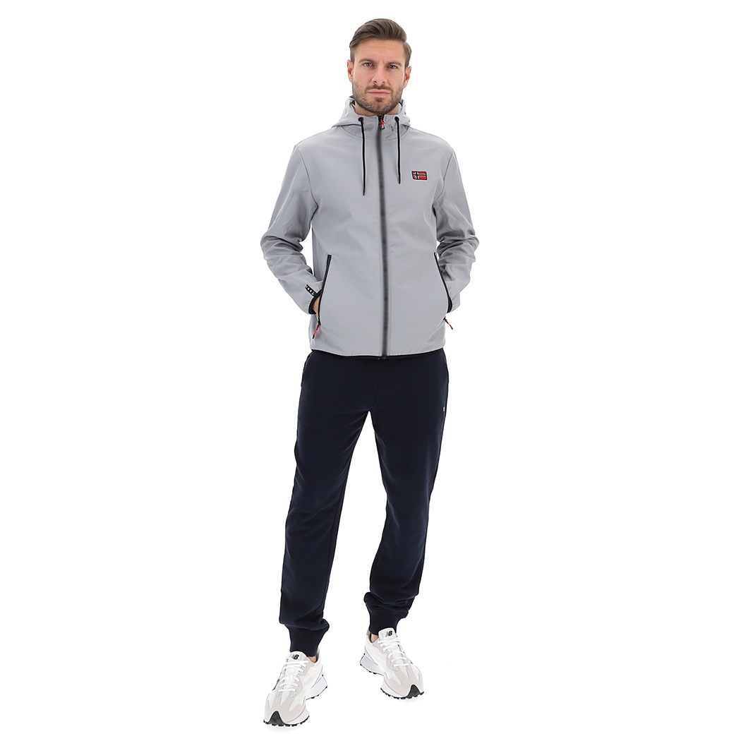 Giubbotto full zip in tessuto softshell con interno in micropile. Cappuccio regolabile con coulisse. Tasche laterali con cerniera.Elastico sui polsi e sul fondo. Piccoli loghi frontali. Leggero, caldo e comodo.