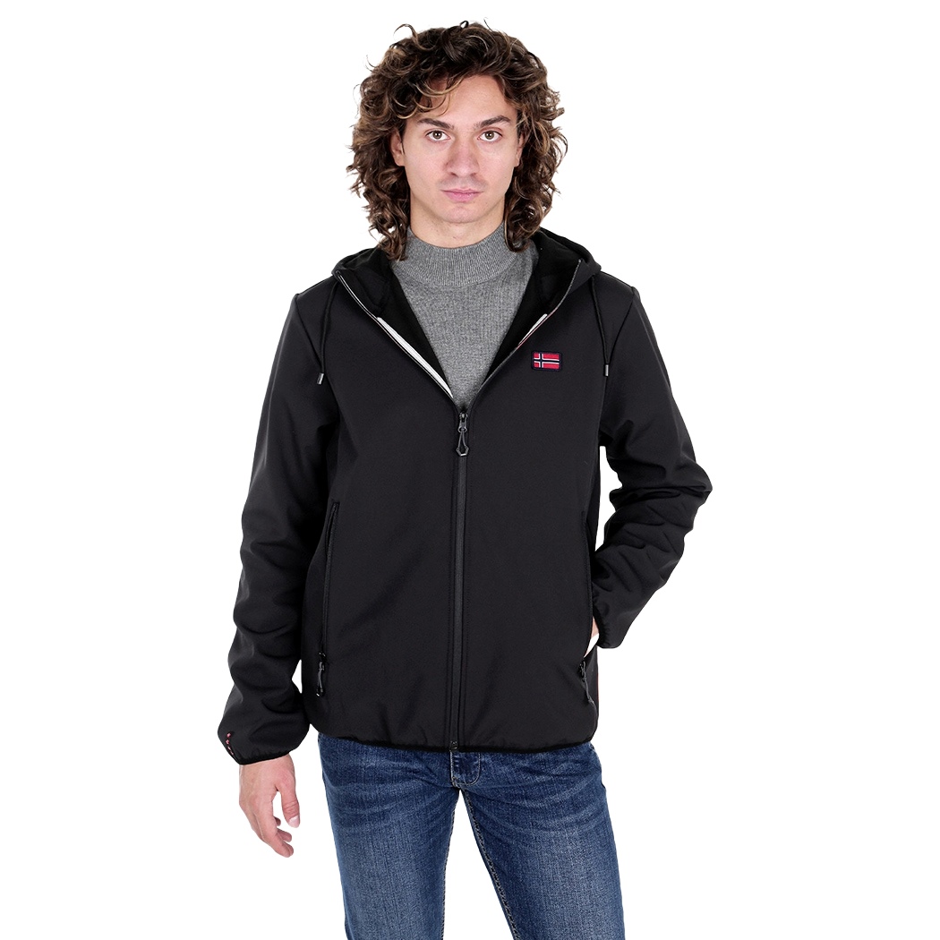 Giubbotto full zip in tessuto softshell con interno in micropile. Cappuccio regolabile con coulisse. Tasche laterali con cerniera.Elastico sui polsi e sul fondo. Piccoli loghi frontali. Leggero, caldo e comodo.
