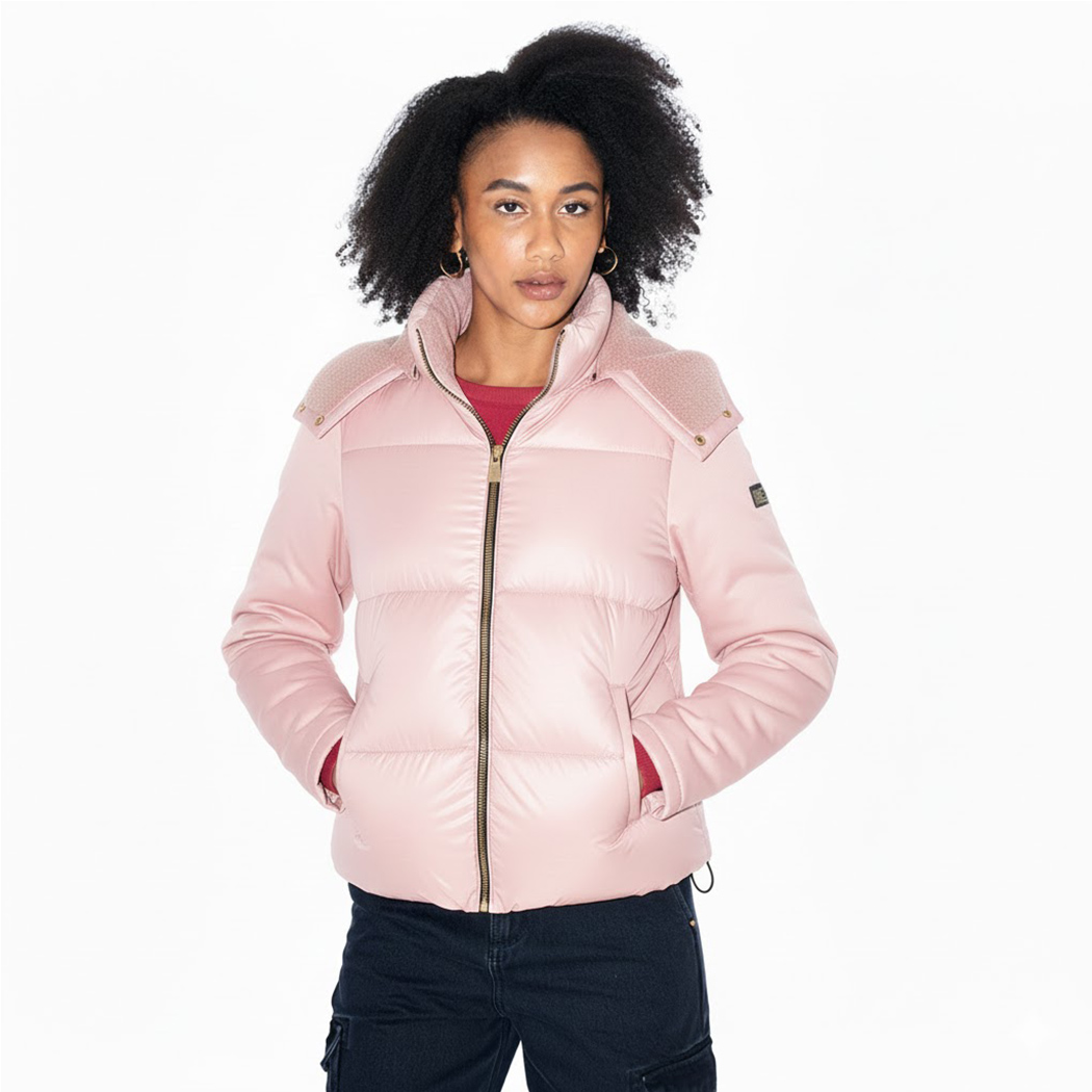 Piumino Yes Zee da donna trapuntato lucido a tinta unita. Giacca dal taglio sagomato, con cappuccio removibile con zip. Maniche in montoncino ecologico.
