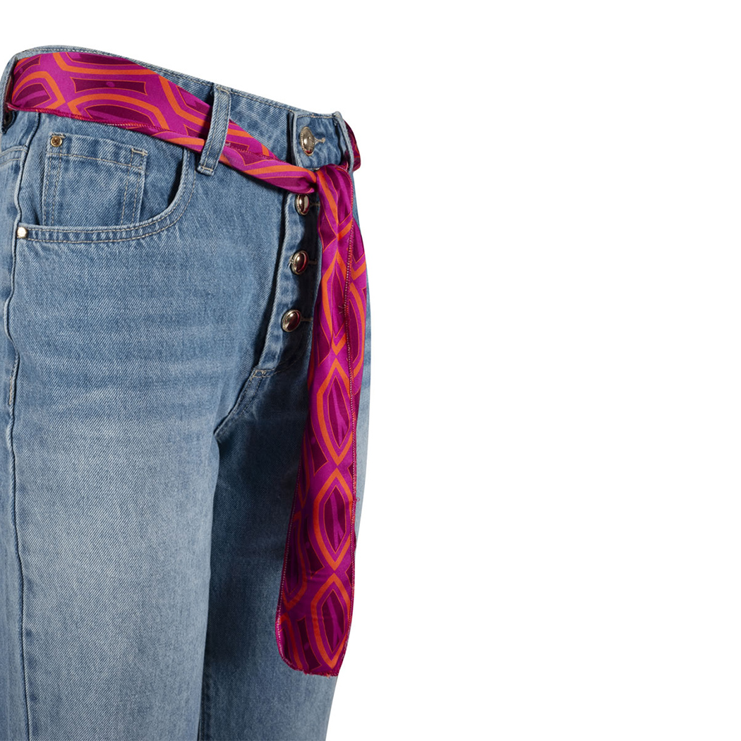 I jeans Yes Zee si sviluppano in total blu denim. Presentano tasche sagomate sul fronte e tasche a toppa sul retro. La vestibilità è morbida e pratica grazie a bottoni ad asola in colorazione dorata. Un particolare dettaglio è rappresentato da cintura in stoffa simil raso in varie tonalità di rosa che dona colore al capo. I jeans sono ideali per occasioni casual ma adatti anche per outfit raffinati. Avere questo capo nel guardaroba è un must-have.